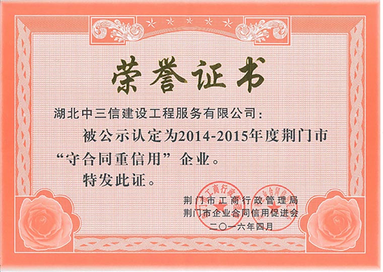 2014-2015年度荊門市“守合同重信用”企業(yè)