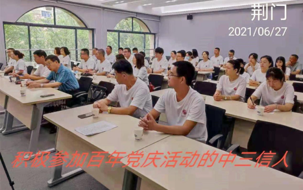 百年華誕、不忘初心!為慶祝中國共產黨建黨100周年,湖北中三信全體職員于2021年6月27日上午10時整在荊門新洋豐大酒店召開以“不忘初心、恪守黨性”為主題的慶祝活動,給偉大的中國共產黨獻上我們最誠摯的祝福。