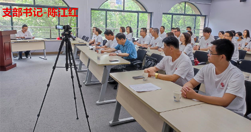 10點整,慶祝會在培訓樓202室正式召開,主持人張婷婷帶領公司中共黨員及參會職員全體起立歌唱《沒有共產黨就沒有新中國》,全場整齊嘹亮的歌聲,讓我們心中頓時對中國共產黨的百年奮斗歷程有了更崇高的敬意。
