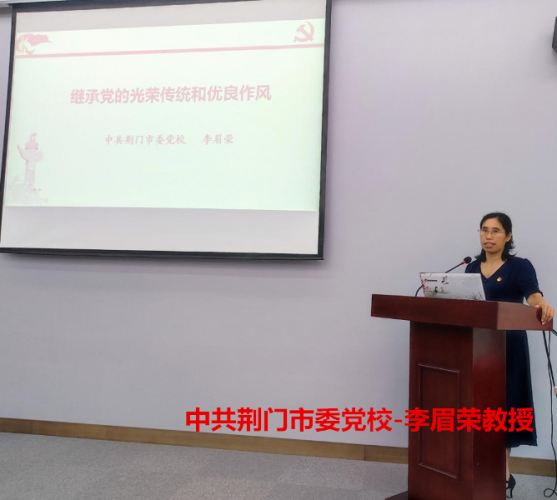 10點45分,由中共荊門市委黨校李眉榮教授宣講《繼承黨的光榮傳統(tǒng)和優(yōu)良作風》,李眉榮教授以建黨以來各個歷史時期的中共黨員事跡向我們闡述了如何做好黨的光榮傳統(tǒng)和優(yōu)良作風的忠實傳承者,繼續(xù)發(fā)揚黨的光榮傳統(tǒng)和優(yōu)良作風,為國家和民族不懈奮斗。