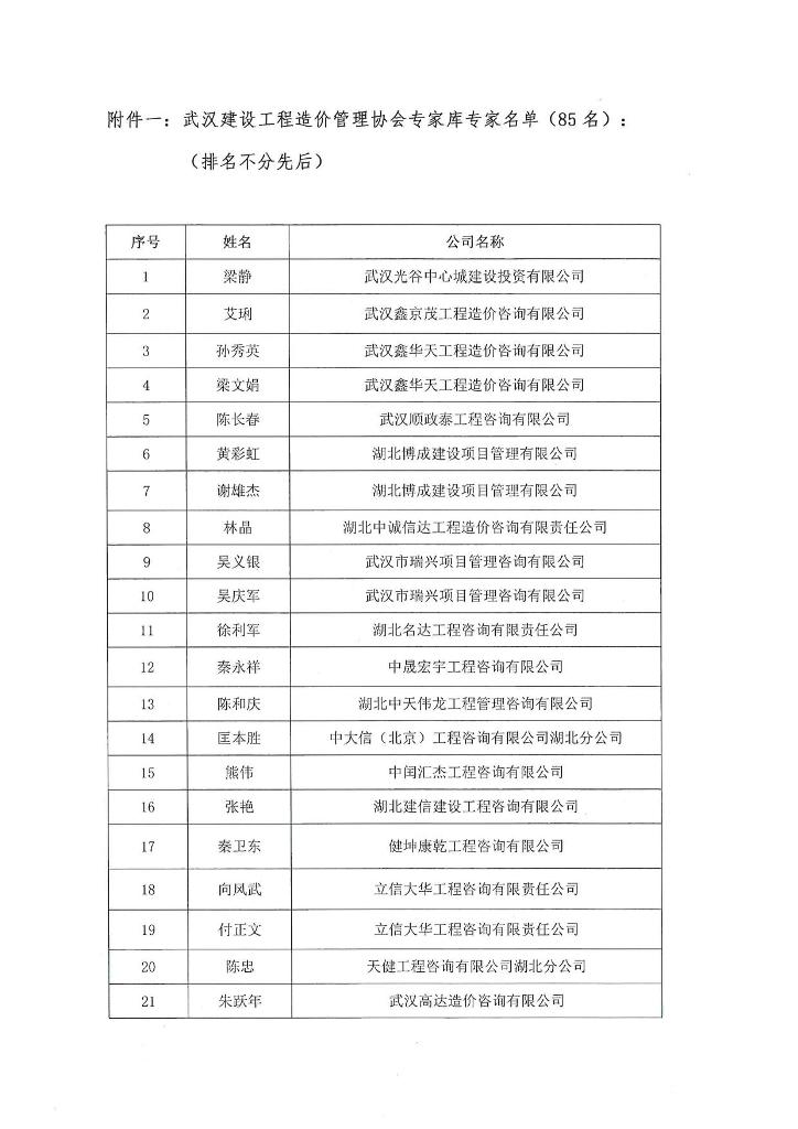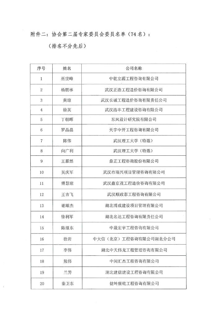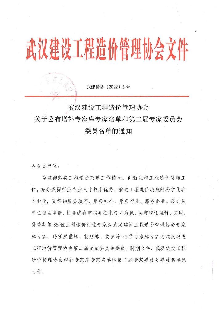 武漢造價協(xié)--關(guān)于公布增補專家?guī)鞂<颐麊魏偷诙脤<椅瘑T會委員名單的通知