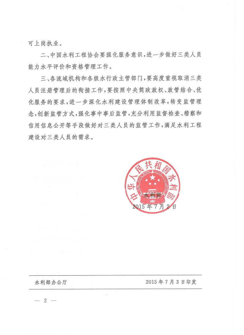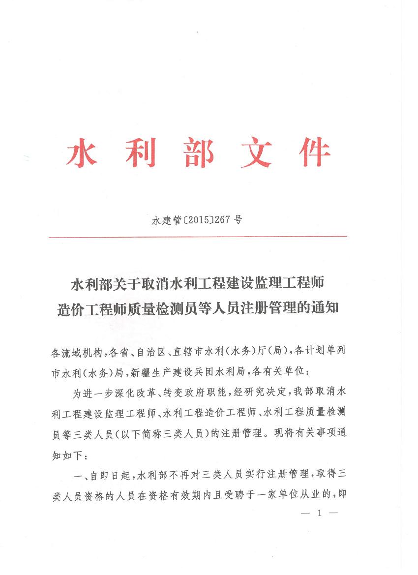 轉(zhuǎn)發(fā)《水利部關(guān)于取消水利工程建設(shè)監(jiān)理工程師造價(jià)工程師質(zhì)量檢測員